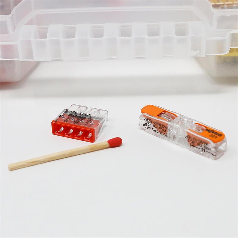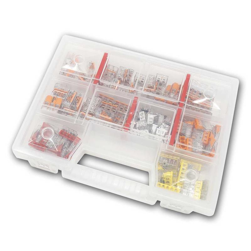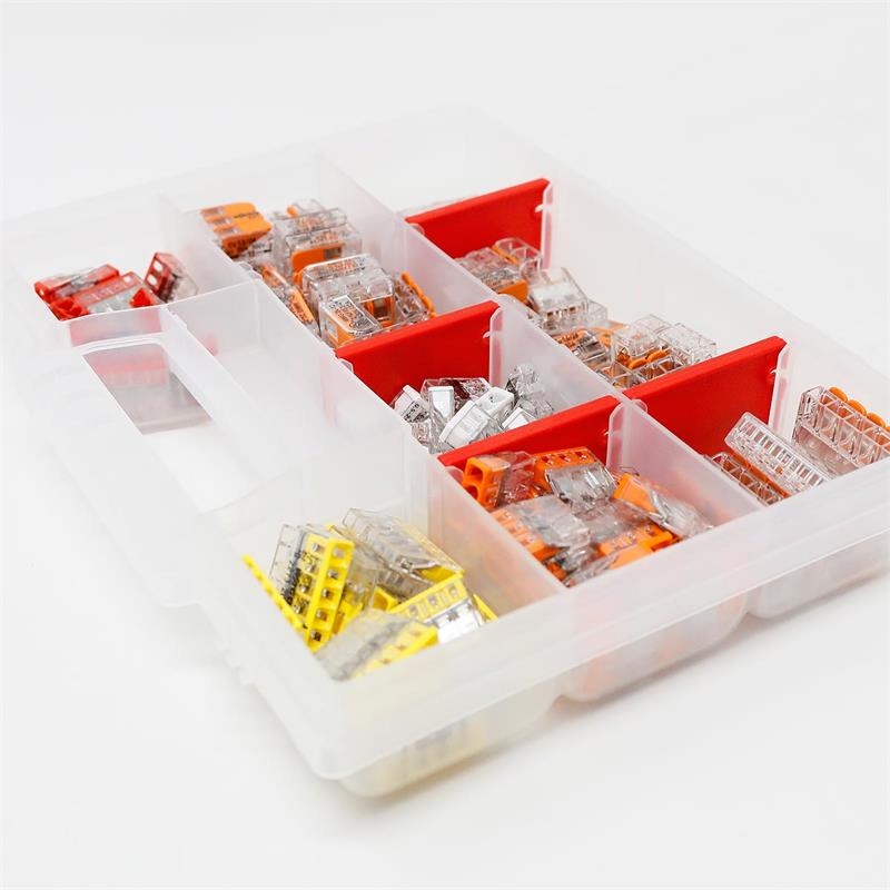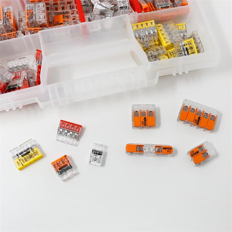 Sortimentsbox mit WAGO Klemmen der Serie 221und 2273, zum Anschließen von Leitern von 0,14 bis 4mm² (ein- und feindrähtig), 130 Stück