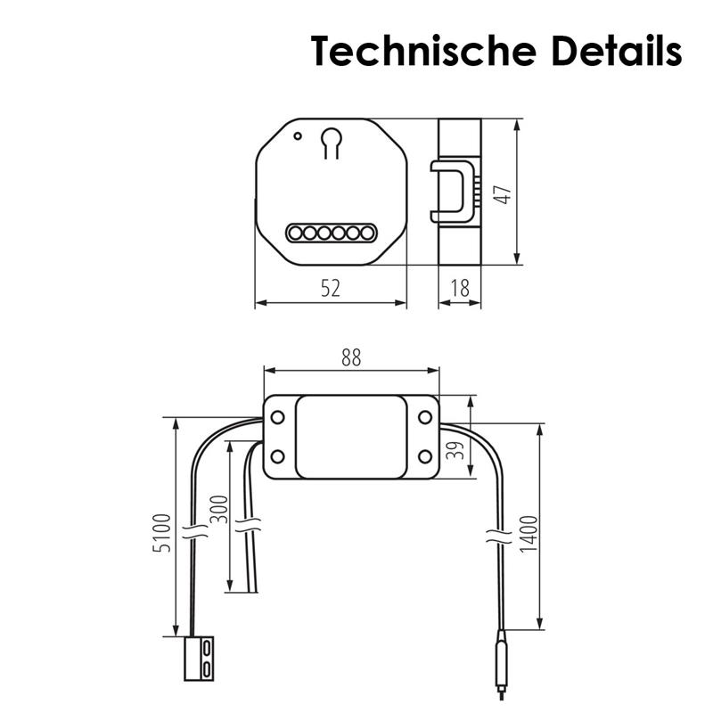 - Maße Empfänger: ca. 88x39x22mm (LxBxH)